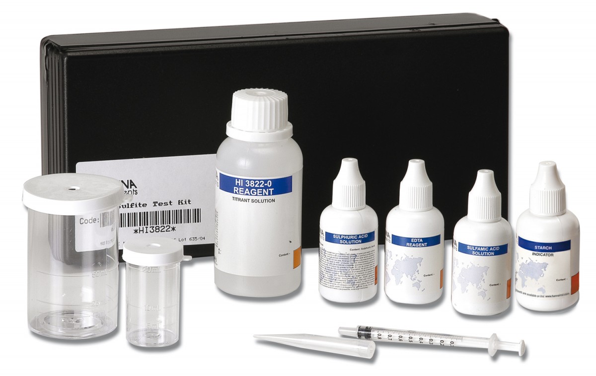Chemischer Testkit zur Bestimmung von Sulfit im Bereich 0 bis 20 mg/l / 0 bis 200 mg/l (ppm).