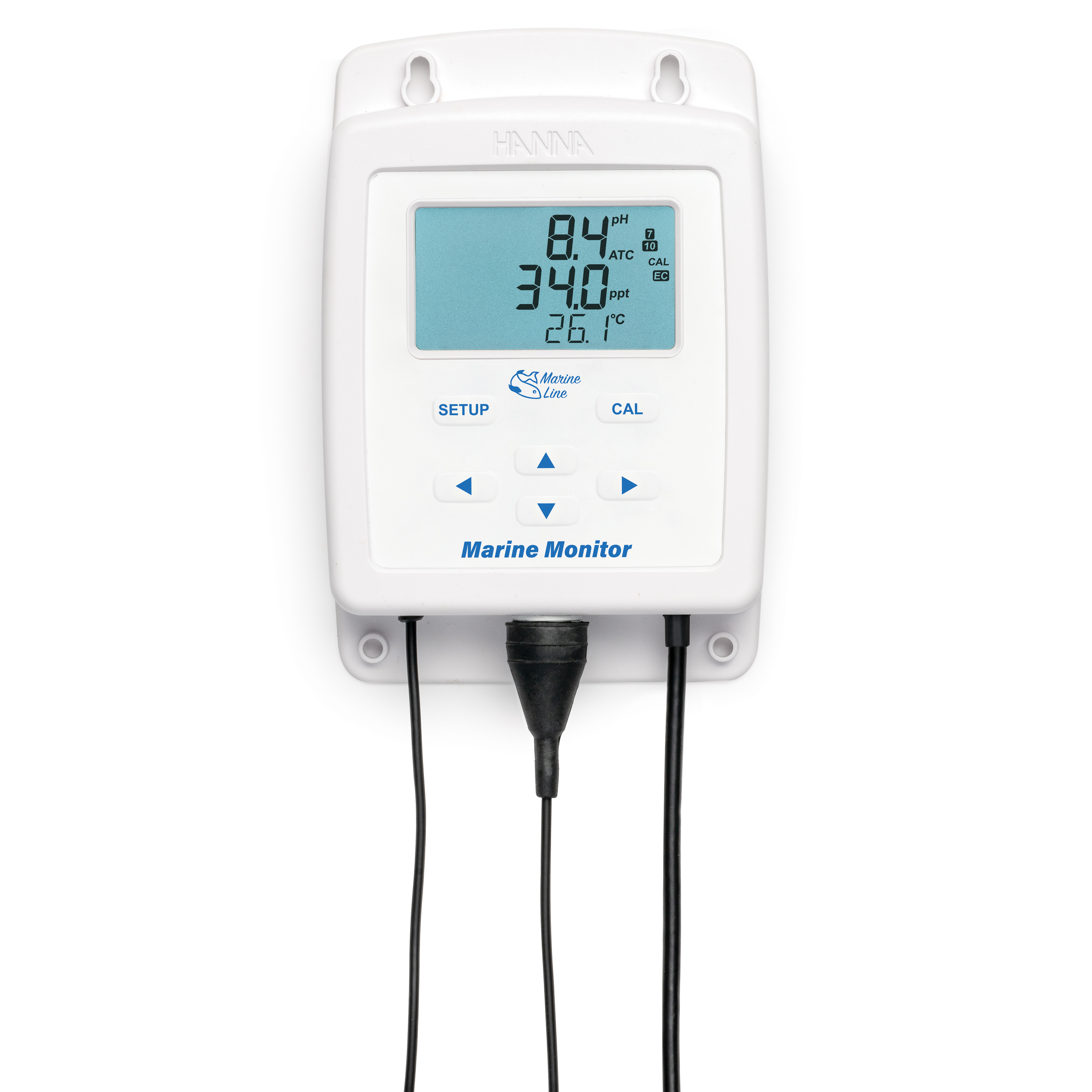 Die Überwachung des Salzgehalts, des pH-Werts und der Temperatur des Wassers ist eine wichtige Routinemaßnahme bei der Pflege eines Meerwasseraquariums oder bei der marinen Aquakultur. Der HI981520 ist ein einfach zu bedienender Monitor, der den Salzgehalt (über die elektrische Leitfähigkeit, „EC“) und den pH-Wert kontinuierlich überwacht und anzeigt.
