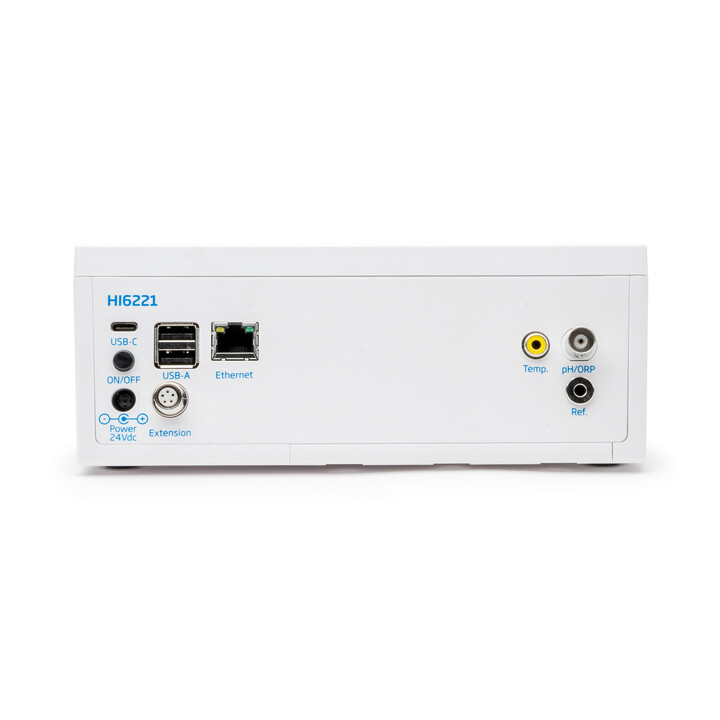 Das HI6321 ist ein netzwerkfähiges Tischmessgerät für  Leitfähigkeit / gelöste Feststoffe (TDS) / Widerstand / Salzgehalt und Temperatur mit einem robusten Gehäuse, dass höchste analytische Qualität mit Benutzerfreundlichkeit und Zuverlässigkeit im Laboralltag vereint.Das Messgerät wird mit der Hanna Instruments Vierring-Leitfähigkeits-Sonde HI7631233 geliefert. Die Sonde misst neben der Leitfähigkeit auch den spezifischen Widerstand, TDS (Total Dissolved Solids bzw. Gesamtgehalt gelöster Feststoffe) und Salinität. Somit eignet sich dieses Labormessgerät ideal für eine breite Palette von industriellen Anwendungen im Bereich Prozess- und Abwasser. Dieses System erfüllt eine Reihe von komplexen Mess- und und Überwachungsanforderungen und bietet Genauigkeit, Reproduzierbarkeit und Zuverlässigkeit. Das HI6321 wird mit einem ElektrodenhalterHI764060 mit flexiblem Arm geliefert. Der Halter lässt sich schnell montieren und hält die Elektroden bei der Messung in Probenbehältern sicher an ihrem Platz.Benutzeroberfläche:> Kapazitiver 7-Zoll-Touchscreen mit Multitouch-Unterstützung> Kapazitive Touch-Tasten für Zurück, Home und Systemmenü> Benutzerfreundliche Icons und Symbole ermöglichen dem Benutzer eine einfache Navigation und die Funktionen des Geräts        zu interpretieren.> Der Benutzer kann wählen zwischen fünf verschiedenen Ansichten wählen:   > Grundlegende Messkonfiguration   > Einfache GLP mit Kalibrierinformationen   > Vollständige GLP mit Elektrodenstatus und Kalibrierpunktdetails   > Live aktualisierte, interaktive Grafik   > Tabellarische Daten mit Datum, Uhrzeit und Notizen Messung:> Messung von μS/cm, mS/cm (Leitfähigkeit); Ω-cm, kΩ-cm, MΩ-cm (spezifischer Widerstand); ppm, ppt (TDS); ppt, PSU, % (Salzgehalt) mit Temperatur> Anwendungsspezifische Profile ermöglichen schnelle und direkte Messung, ohne dass der Sensor und die Systemeinstellungen aktualisiert werden müssen> Aktives Protokoll während der Messung> Anzeige der Messstabilität (unter Verwendung der Einstellung Stabilitätskriterien)> Ablesemodi: direkt und direkt/Autohold> Temperaturkompensation kann automatisch (mit Temperaturfühler) oder manuell eingestellt werden> Akustische und/oder Alarmmeldungen für Messungen außerhalb der vordefinierten Grenzwerte> Galvanische Isolierung für pH/Redox-Messung Kalibrierung:> Ein-Punkt-Kalibrierung des Salzgehalts mit 100%igen Salzgehaltsstandard, wobei die Salinitätsskala auf % eingestellt ist. inzel> Einzel- oder Mehrfach-Leitfähigkeits-Kalibrierung mit Leitfähigkeitsstandards> Nichtflüchtiger Speicher speichert Daten und Einstellungen Protokollierung: > Datenprotokollierung von mindestens 1.000.000 Datenpunkten (mit Zeit und Datumsstempel) > Protokollierungstypen: manuell, automatisch, Autohold > Proben-ID für manuelle und Autohold-Daten  Verbindungsmöglichkeiten: > Übertragung protokollierter Daten auf einen USB-Stick > Protokolldateien mit Messwerten und Kalibrierdaten (.csv-Datei) > FTP und E-Mail für den Protokollexport über Ethernet- und Wi-Fi-Verbindung > USB Typ A für USB-Stick, Tastatur und Drucker > USB-Typ C für USB-Stick und PC-Anschluss  Hilfe und Anleitungen: > Videopräsentation der wichtigsten Funktionen Lieferinformation: HI6321 wird geliefert mit: HI7631233 EC-Elektrode; HI764060 Elektrodenhalter; Kapillarpipette; 24-V-DC Netzteil, USB-C auf USB-A Kabel; Kurzanleitung, Gerätezertifikat. Technische Daten